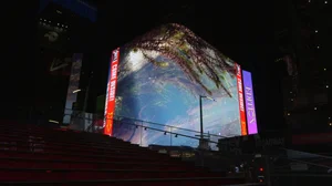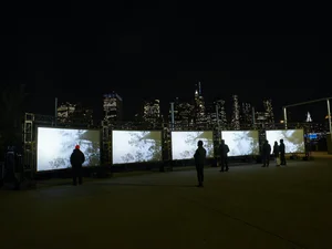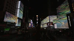 Wacissa (2019), Multi-Channel Installation in Times Square, New York, NY, April 2021.On view April 1 - 30, 2021 in Times Square, New York, NY. Video by Tatyana Tenenbaum.